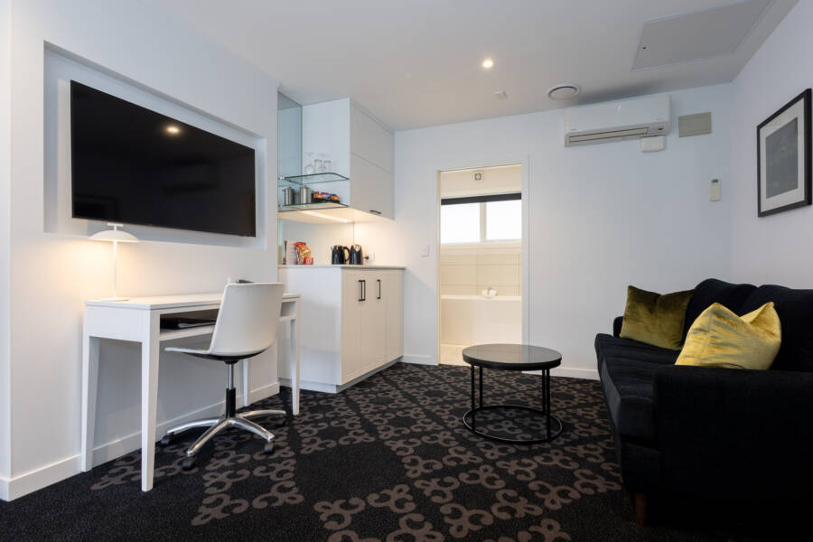 Indulge in the comfort of our Boutique Suite, where luxury meets convenience. The separate lounge area is equipped with air conditioning, television and free unlimited WiFi for your convenience. Additional amenities include microwaves, Kube clocks, minibars, plunger coffee, and in-room safes.