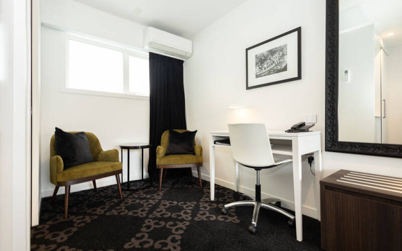 Indulge in the luxurious features of our Superior Room at the Regent of Rotorua. These rooms are equipped with either king beds or two single beds, adorned with leather headboards and luxurious linens. Enjoy the added touches of designer bathrobes, furniture, a desk, and air conditioning.